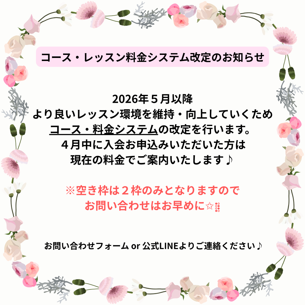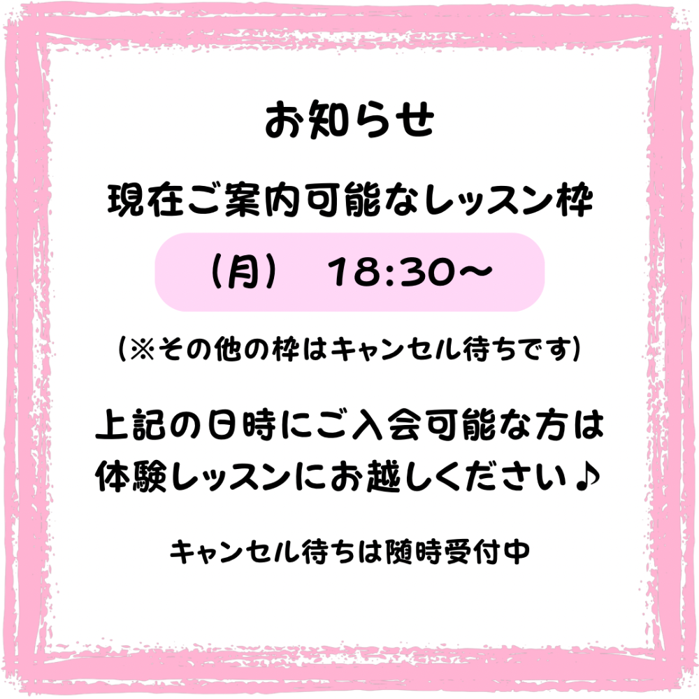 | レッスン時間 | 月 | 火 | 水 | 木 | 金 | 土 | 日 |
